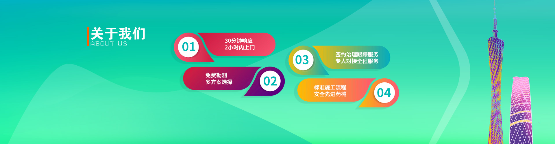廣州羞羞在线视频白蟻防治有限公司 ® 前身(shēn)是(shì)廣州白蟻(yǐ)防治所(suǒ)旗下的(de)一所老牌白蟻防治公司,隨著社會(huì)的快速發(fā)展和國家政策的變化(huà),2015年重新注冊命名為廣州華(huá)兵白蟻防治有限公司。 廣州羞羞在线视频白蟻防治(zhì)從事白蟻(yǐ)、四害等城市害蟲預防與治理。擁有一批從事白蟻防治的專家、技術(shù)顧問、專業工程師及專業技術施工人員(yuán),主營園(yuán)林綠化、新(xīn)建、改建、擴建、裝飾裝修、等房屋的白(bái)蟻防治工程;專業提供白蟻防治、熏(xūn)蒸 殺蟲施工服務及谘詢;我們擁有雄厚的技術力量、豐富的實踐經驗、規(guī)範的管理、嚴格的施工和複查跟蹤製度(dù),確保治理和預防質量;竭誠為廣(guǎng)大(dà)客戶提供優質、高效的服務。 我(wǒ)們將始(shǐ)終堅持" 安全與質(zhì)量並(bìng)重,誠信服務" 的理念,以先進的技術(shù)和科學的管理為客戶提供優質的技術工程服務。